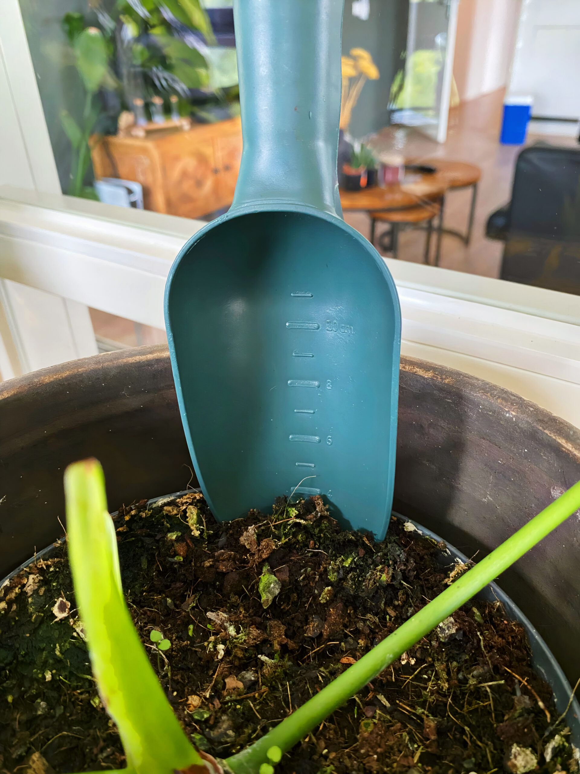 Goed gereedschap is essentieel bij planten verzorgen, zeker bij het verpotten van gevoelige aroids zoals Monstera, Alocasia of Syngonium. Met deze tuinschep werk je nauwkeurig rondom wortels zonder schade aan te richten. De stevige punt maakt het makkelijk om oude potgrond los te maken, terwijl de maatverdeling helpt om je planten op de juiste diepte terug te zetten. Zo geef je jouw aroids de zorg en ruimte die ze verdienen voor een gezonde groei.